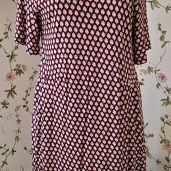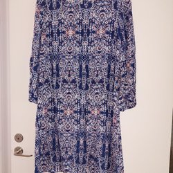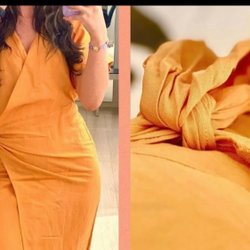 Gul klänning med ett paisley-mönster och en knut framtill. Klänningen har en v-ringning och korta ärmar. Är väldigt mjuk och i mycket fint skick!
