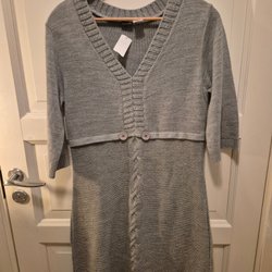En snygg och bekväm klänning i en härlig grå färg. Den har en enkel design med tunna axelband och en knut i midjan. Klänningen är perfekt för varma sommardagar. Linne. Storlek L.