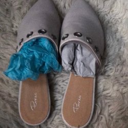 Orange, blå klänning