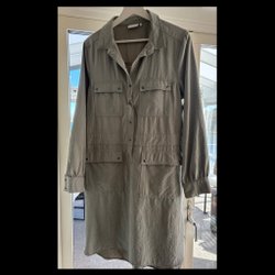 Maxiklänning i tunn, skir kvalitet med diskret skimmer. Knappar fram och knytskärp i midjan. V-ringning med smal volangkant. Korta fjärilsärmar och fickor i sidorna. Avtagbar underklänning i vävd kvalitet. Längd ca 132 cm i stl 36.
