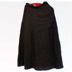 Klänning med långa ärmar och knappar framtill. Rundad krage. Klänningen har ett blommigt mönster och en mönstrad bård nedtill. Ärmsluten har knytband. Knytning i midjan för att dra ihop eller ha den lös.