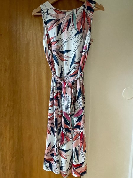 Klänning i blankt tyg, fint fall, skärp i midjan. Stl 36. Använd tre gånger. Mycket bra skick.