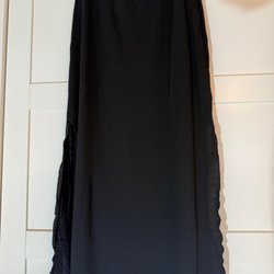 Vit klänning med smockdetalj upptill och trekvartsärmar. Klänningen har en rundad halsringning och en lös passform med fickor i sidorna. Nederkanten är asymmetrisk. Klänningen har fickor.