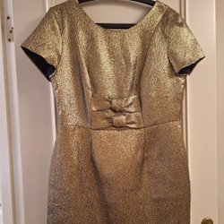 Klänning med korta volangärmar och v-ringning. Klänningen har ett diskret prickigt mönster och en volangkant nedtill, fodrad. Klänningen är i en mörkblå nyans. Dyr i inköp, helt ny. För mått se bilder. Perfekt på bröllop, dop, examensfest.