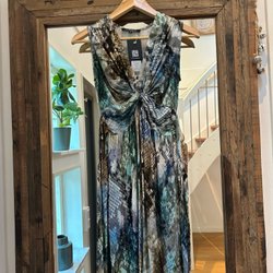 Lätt klockad kjoldel samt dold dragkedja bak i ryggen. Klänningen är helfodrad så passar bra även under hösten. Längd från nacken ner ca: 97cm.