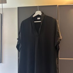 Elegant, ljusgrå klänning med smala axelband och v-ringning. Klänningen har en figurnära passform med draperade detaljer som framhäver silhuetten. Ryggen har korsade band.