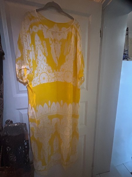 Gul och vit klänning