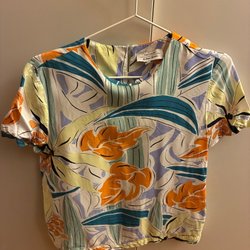 Klänning med korta ärmar och knappar framtill. Klänningen har en mönstrad design och fickor i sidorna. Märke: ENCORE UNE FOIS PARIS. Köpt secondhand för 295kr.