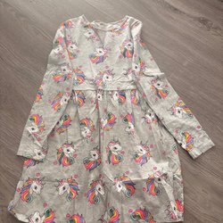 Blå kjole med lange ærmer i blonde. Kjolen har en løs pasform og en rund halsudskæring. Den er perfekt til både hverdag og fest.