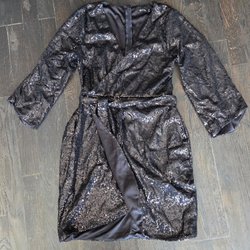 Denne sorte kjole har en hvid blondekrave og matchende blondekanter langs knaplukningen foran og ved ærmernes manchetter. Kjolen har lange ærmer og en udstående nederdel, der giver et feminint og legende udtryk. Knapperne er mørke og skaber en fin kontrast til de hvide blonder. Kjolen er velegnet til både hverdag og festlige lejligheder, afhængigt af styling.