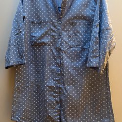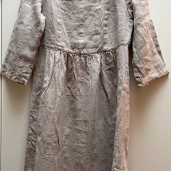 Härlig blå v-ringad linneklänning med trekvartsärmar och V-ringning.