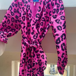 Vit klänning med långa puffärmar och volangdetaljer vid kragen och ärmsluten. Klänningen har en genombruten broderad design över hela tyget och knappar framtill.