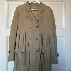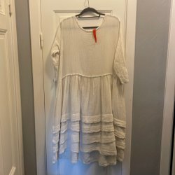 Magisk vintageklänning med otroligt fint detaljarbete i havregul färg med volangdetalj & passpoal kring hals & liv. Smockresår i midja & fint veckad kjol. Knäppning framtill med söta silverknappar.Midjan är markerad med smockdetaljer som ger en fin mkt feminin passform. Bröllop eller fest? Denna blir du garanterat ensam om. Strl uppskattas till S-M men kolla mått!