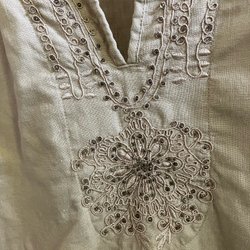 Ärmlös klänning med ett livfullt blommönster i blått och grönt. Klänningen har en avslappnad passform och är perfekt för varma dagar. Endast använd vid ett tillfälle.