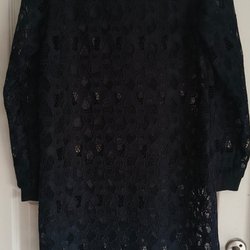Elegant svart klänning med långa ärmar och knytband i midjan. Klänningen har en djup v-ringning och en avslappnad passform.