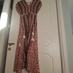 Färgglad maxiklänning med smala axelband och ett paisley-inspirerat mönster. Klänningen har en rynkad nederkant som ger en fin volang.