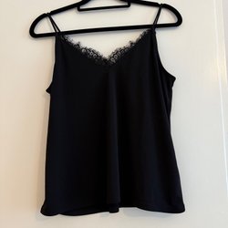 Svart, ärmlös maxiklänning med smala axelband och v-ringning. Klänningen har en lös passform och ett böljande fall.