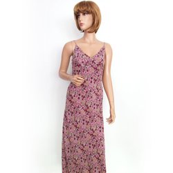 VINTAGE Maxiklänning Rosa 34 Ärmlös Hjärtformad urringning