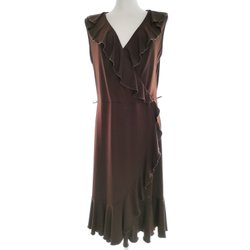 WALLIS Maxiklänning Spetsbroderi Brun 44 Ärmlös Viskos V-ringning