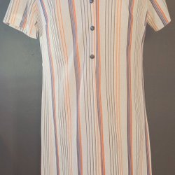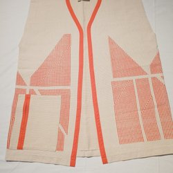 Långärmad kartan i en beige nyans med detaljer i form av broderier och dekorativa band i rött och guld. Klänningen har ett broderat parti runt halsen och ned längs framsidan, samt broderier på ärmarna.