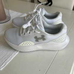 Vit klänning med turkos brodyr och tofsar. Klänningen har en V-ringning med detaljerade pärlor och broderier. Midjan är elastisk med ett knytband som avslutas med tofsar. Ärmarna är korta med volangdetaljer och broderade mönster. Helt ny prislappar kvar på plagget.