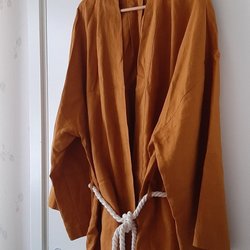 Handmade, klänning i 100 % linne, med långa ärmar och knappar framtill. Klänningen har en smickrande passform med rynkad midja och en utsvängd kjol som faller elegant. Den har en rundad halsringning och är perfekt för både vardag och mer uppklädda tillfällen.