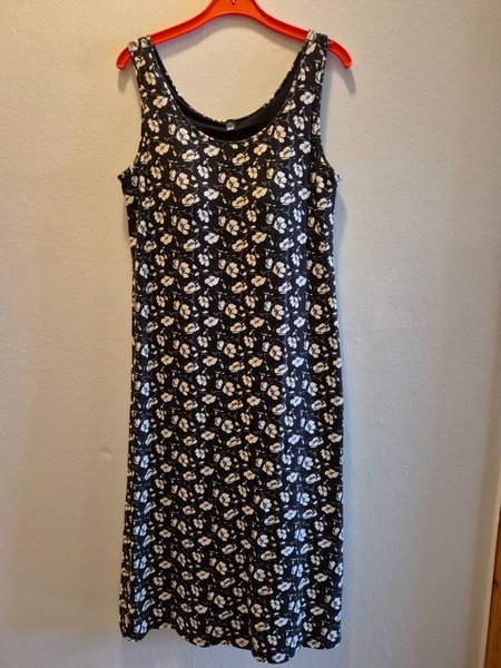 Stl XL Klänningen är ärmlös och har en rund halsringning.