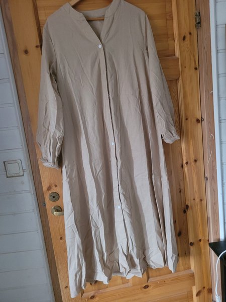 Lång skjortklänning i en neutral färg med knappar framtill och krage. Långa ärmar med muddar.