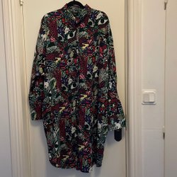 Ärmlös klänning i en blyertsgrå nyans.Svart foder och den har en rund halsringning och ledig passform. Dragkedja i sidan. Bystvidd cirka 58 cm och längd 120 cm. Gissningsvis storlek Large.