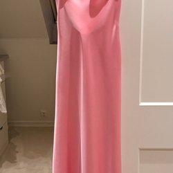 Elegant, axelbandslös klänning i en vacker rosa nyans. Klänningen har en figurnära passform med draperad detalj över bysten och en böljande kjol med en diskret slits. Perfekt för speciella tillfällen.passar 40-44(46). Material är bra kvalitet satin lite hårdare satin, sitter mycket elegant på kroppen.