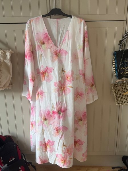 Vit, rosa klänning