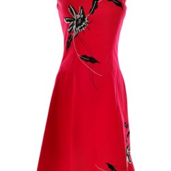 Den här klänningen har en unik design som kombinerar tidlös stil med moderna detaljer. Med dess vackra röda färg och klassiska A-linje silhuett kommer den säkert att sticka ut i mängden. Perfekt för att skapa en sofistikerad och elegant look.