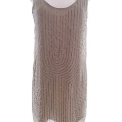 Denna vackra klänning är en perfekt kombination av stil och komfort. Tillverkad av 100% viskos, passar den perfekt för både vardagsbruk och festliga tillfällen. Med sin knälånga, raka passform och korta ärmar är den både elegant och bekväm att bära.Storlek M