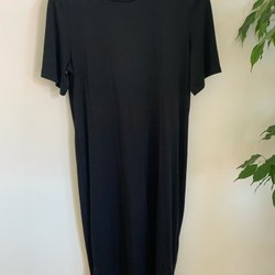 Svart klänning med rund halsringning och ärmlös design. Klänningen har en avslappnad passform. Den har diskreta fickor i sidorna.