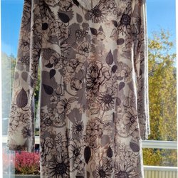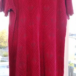 Material okänt men ev. inslag av ylle då klänningen är värmande. Etikett visar överstuken tvättbalja och strykjärn en prick.
