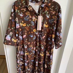 Mönstrad Klänning i en lång rak modell.