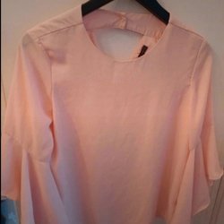 Vit klänning med tryck av blommor, fjärilar och en stadsbild. Texten "Be your true self" är tryckt under bilden, samt "Colourno 19" och "BE WHO YOU REALLY!". Klänningen har 3/4 ärmar. Djur finns i hemmet.