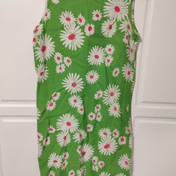 Lång, ärmlös klänning med blommigt mönster i rosa och vita nyanser. Klänningen har spetsdetaljer vid axlarna och runt halsringningen, samt små rosetter på axelbanden.