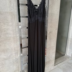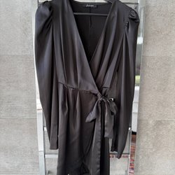 Klänning med knytning framtill och långa ärmar. Mönstrad med blommor i olika färger.