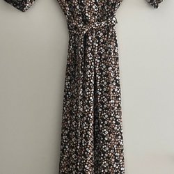 Klänning med ett geometriskt mönster i olika nyanser. Den har 3/4 ärmar och två fickor fram.