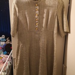 Brun klänning från Zara Basic med trekvartsärm och en volang nedtill. Klänningen har en rund halsringning med rynkdetaljer. Grov i tyget, är en söt höst/julklänning. OBS! Katt finns i hemmet.