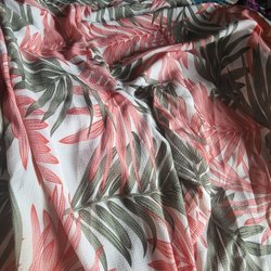 En rosa klänning med blommönster. Klänningen har tunna axelband och en rosettdetalj framtill. Klänningen är knälång.