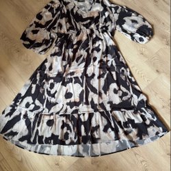 Klänning från Soyaconcept i storlek XXL mörkblå denim. Klänningen har puffärmar och smockdetaljer upptill. Klänningen är väldigt mjuk. Kjoldelen är i två volanger.Helt ny !!