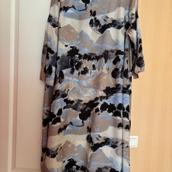 Elegant klänning från Masai, storlek M, svart med vitt mönster. Fyrkantig urringning, långa ärmar, sidfickor. Avskuren i midjan med fina veck som faller snyggt. Mått längd från mitt bak ca 87 cm, bystmått ca 44 cm. Mjukt, skönt och stretchigt material 95 % viskos, 5 % elastan. Sparsamt använd, i mycket gott skick, hel och ren klänning. Betalning ska ske senast tre dagar efter avslutad auktion, tack.
