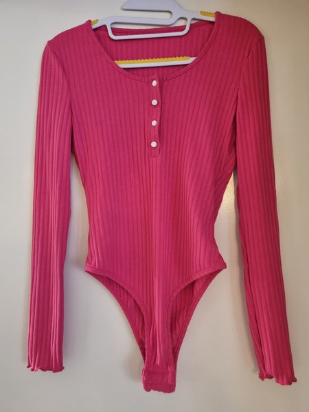Långärmad body i ribbat tyg med rund halsringning och knappar framtill. Bodyn har en smickrande passform och är perfekt för att skapa en slät silhuett under andra plagg eller att bära som den är.