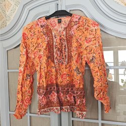 I fint/ mycket fint skick! I storlek M. Med resår nedtill och armslut. Mått från armhåla till armhåla är 57 cm och längd från axeln och ner 62 cm. Märke okänt. Samfraktar vid fler köp!
