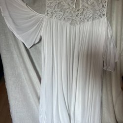 Vit blus med volangärmar och knytning framtill. Blusen har en ledig passform och en lätt, luftig design.