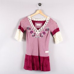 Fin blus med rutigt mönster och enfärgad vinröd överdel från Odd Molly. Blusen har en off-shoulder design med virkad kant och korta ärmar. Behöver dock inte dras ned över axeln utan kan bäras som en vidare båtringning. En söt rosett pryder framsidan.