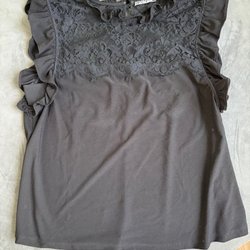 Transparent blus med långa ärmar och en djup V-ringning från Frontrow. Blusen har detaljerade hålmönster längs halsringningen och nederkanten, vilket ger en luftig och feminin känsla.