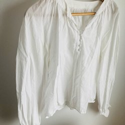 Snygg blus i stretchig polyester. Dragkedja i ryggen. Knytband i halsen. Fint skick.